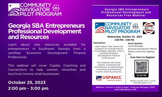 Learn with the USPAACC Southeast Chapter about new resources available for entrepreneurs in Southwest Georgia from a certified Economic Development Finance Professional!
