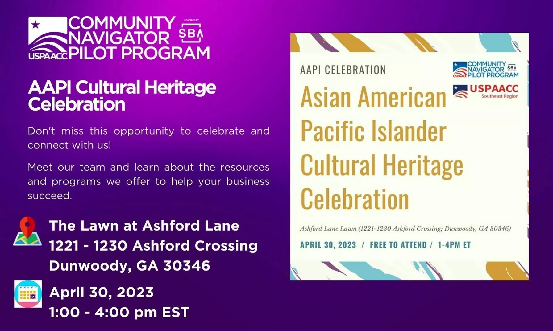 04/30/2023, USPAACC Southeast Chapter was able to connect with 50+ attendees at AAPI Cultural Heritage Celebration, an event that aims to honor and showcase the rich diversity and cultural heritage of the Asian American and Pacific Islander communities.