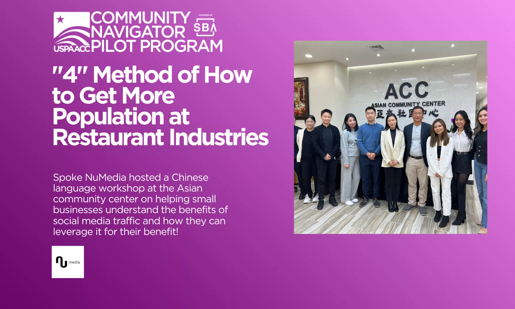 Spoke NuMedia hosted an in person Chinese language workshop at the Asian community center on Nov 9. 15 people attended the event. The event was aim to help small businesses understand the benefits of social media traffic and how they can leverage it for their benefit!