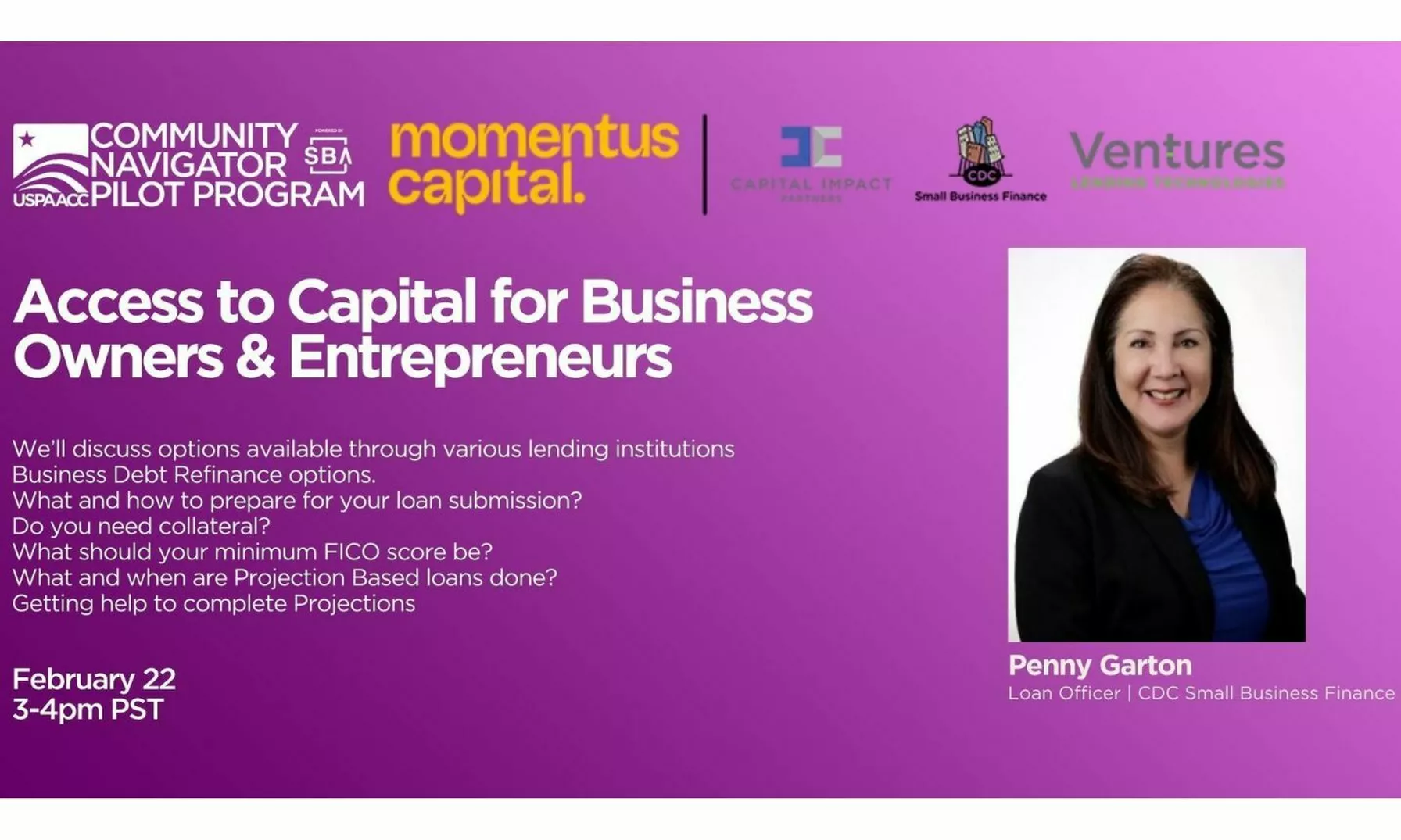 On 02/22/2023, USPAACC Western Chapter hosted a webinar to provide resources and assistance to small business owners on how to get access to capital by offering financial consultancy. 12 people attended!