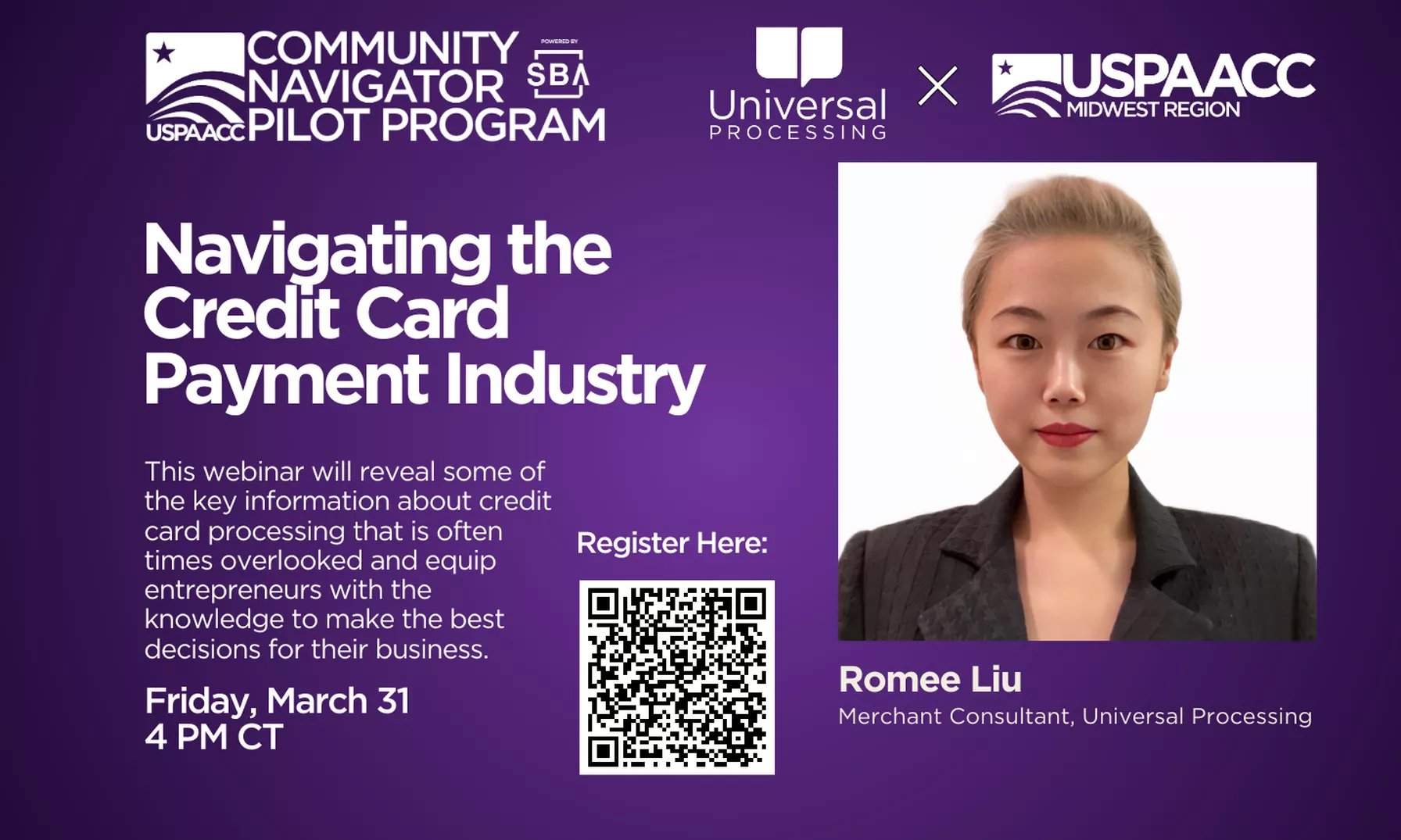 03/31/2023, USPAACC Midwest Chapter& Universal Processing hosted a webinar to make small businesses get a better understanding of how the credit card payment industry works and how to make informed decisions for their businesses. 6 people attended!