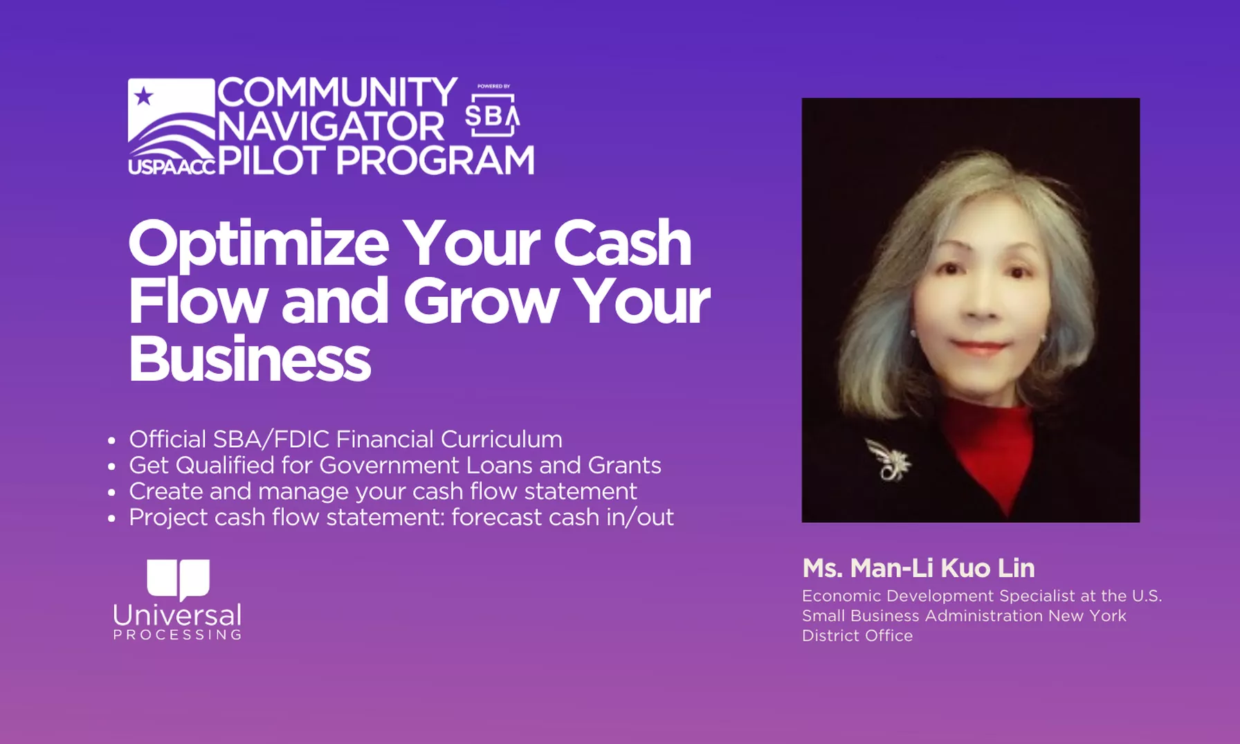 Universal Processing hosted a webinar “Optimize Your Cash Flow and Grow Your Business SBA 和 FDIC 金融课程” in both English and Chinese on Oct 24 and Oct 27, a total of 4 sessions. It had 79 people attended. Led by Ms. Li, an Economic Development Specialist from SBA New York. We received a lot of questions and feedbacks after the webinars.